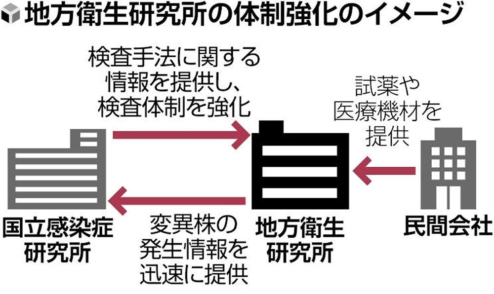 政府は新たな感染症に備え、全国の都道府県や政令市などが設置している地方衛生研究所(地衛研)の体制強化に乗り出す。新型コロナウイルスの教訓を踏まえ、感染症対策の拠点である国立感染症研究所(感染研)や医療資材を保有する民間会社などとの連携を深め、検査体制などを整える。