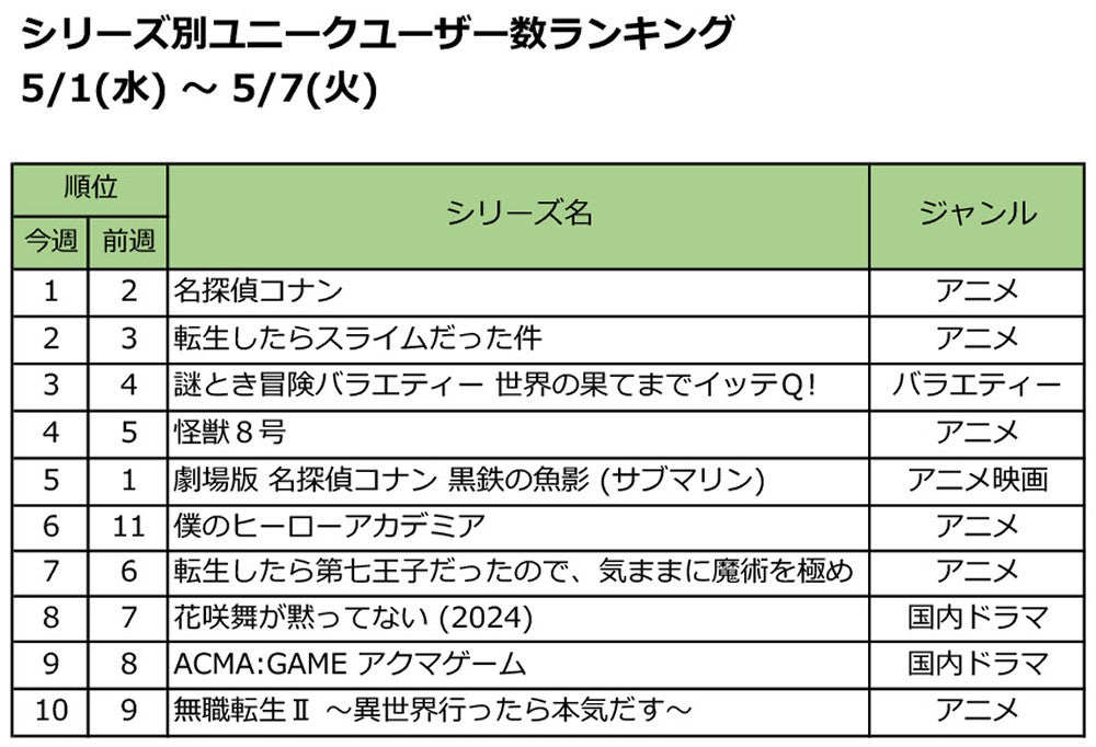 今週4位にランクインしたのは、見逃し配信中のアニメ「怪獣8号」。
