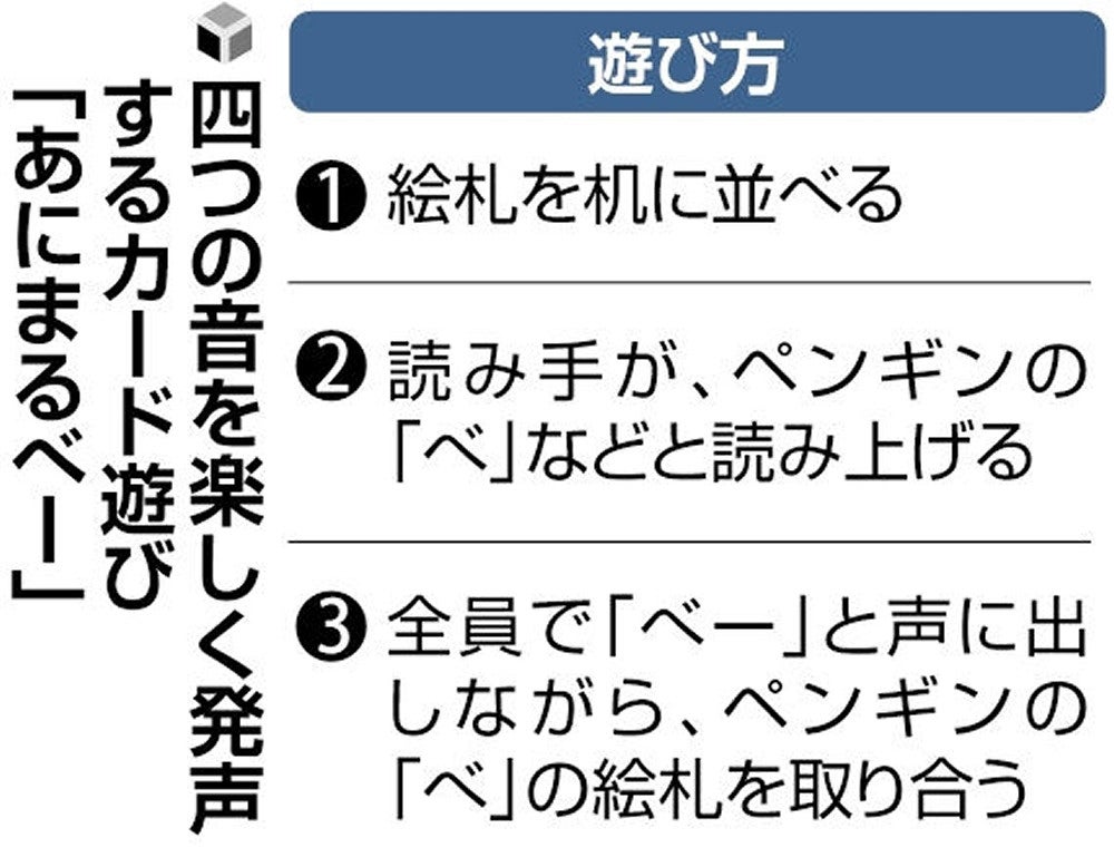 きっかけは、医療関係者らでつくる一般社団法人「inochi未来プロジェクト」(理事長=澤芳樹・大阪大特任教授)主催の教育プログラムに、医学部志望の山崎さんが昨年6月、3人を誘って参加したことだった。 プログラムには全国の中高生計170チームが参加。SASの課題解決策をその後半年かけて考えて12月の全国大会に提案し、コンテスト方式で審査を受けるという内容だ。◎ 4人は早速リサーチを開始。子どもの約3%がSASになるとされるが多くは見過ごされていることや、発育の遅れや日中の猛烈な眠気による学力の低下を招くことを知った。 「どうすれば予防できるのか」。物おじしない性格の保木さんを中心に、患者の親や専門医ら50人以上に連絡を取った。 その過程で鼻の通りが悪いと小児SASになりやすい傾向があることがわかり、その改善法として有名な「あいうべ体操」を編み出した福岡市の内科医・今井一彰さん(53)にオンライン会議で話を聞いた。 今井さんは約20年前、口や舌の筋肉を大きく使って、「あ」「い」「う」「べ」と発声する体操を発案。感染や歯周病の原因となる口呼吸を改善し、鼻呼吸がしやすくなるとして、全国の医療機関や学校などで推奨されている。 「これだ」と思った4人が幼い子どもを持つ親たちに体操についてアンケートを行ったが、「楽しくない」「めんどくさい」との理由で、子どもが続けるのは難しいとの結果だった。◎ 知恵を絞って行き着いたのが、カード遊びで取り組むという発想。絵が得意な福田さんと山本さんが、あいうべ体操で用いる四つの音の口の形をした動物の顔を絵札に描き、「あにまるべー」と命名した。 遊び方は、まず四つの音の口の形をしたライオン、カエル、サル、ペンギン、ブタの5種類の絵札計20枚を机に並べる。そして、大人が「ペンギンの『べ』」と読み上げると、参加者全員で「べー」と発声しながら、自分と同じ口の形をしたペンギンの絵札を取るのを競う。 3~5歳の幼児10人に試したところ、ほぼ全員が1週間継続して遊んでくれた。 迎えた全国大会当日。400人以上の観客と一緒に「あにまるべー」を実践してアピールすると、観客が最も支持する「オーディエンス賞」に輝いた。商品化に向け、まずは保育士向けのサイトで紹介してもらう計画を進めている。 今井さんは「行動力と発想力に驚いた。あいうべ体操の継続に効果がある」と太鼓判。リーダー役の山崎さんは「子どもと大人の間にいる高校生だからこそ、楽しく続けられる方法を考案できた。いずれ商品化したい」と意気込む。 鹿児島大病院の稲田絵美講師(小児歯科)の話「遊びを通じて、小児SASの存在を保護者が知るきっかけになる試みだ。免疫力が高まり風邪やアレルギー、虫歯への効果も期待でき、商品化されれば病院で使ってみたい」