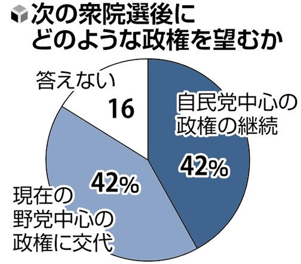 読売新聞社の全国世論調査で、次期衆院選後にどのような政権を望むか尋ねたところ、「自民党中心の政権の継続」と「現在の野党中心の政権に交代」が、いずれも42%で並んだ。次期衆院選の比例選投票先は、1位が自民党の27%(前回4月調査26%)、2位が立憲民主党の15%(同10%)、3位が日本維新の会の10%(同10%)だった。 2021年衆院選の開票作業 調査は5月17~19日に実施した。 Japan Japan News News News Japan Politics Yomiuri News Yomiuri Politics Yomiuri Shimbun 政治 読売政治 読売新聞