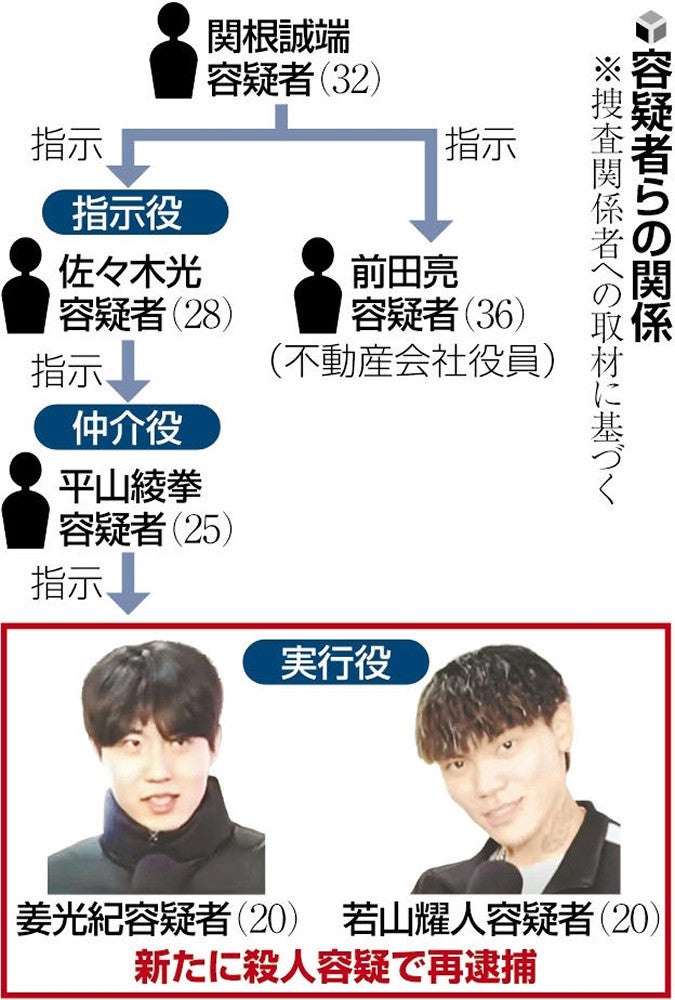 「もっとみのかも夢大使」を委嘱された当時の若山耀人容疑者(2014年3月) 知人男性(40)によると、若山容疑者は最近、東京・渋谷のクラブを訪れており、姜光紀容疑者(20)とVIP席で朝まで飲む姿が見られた。男性は「一晩で約100万円を使うこともあり、派手に遊んでいた」と語った。 捜査関係者によると、2人は昨年12月~今年1月に事件の仲介役となった平山綾拳容疑者(25)と渋谷のクラブで知り合ったという。3月、動画配信する男性の街頭インタビューに応じた若山容疑者は「好きな言葉」を聞かれ、「結局お金です。世の中は」と答えていた。 親族の男性は「成人式の時にもあいさつに来てくれた。一体何があったのか……」と残念がった。