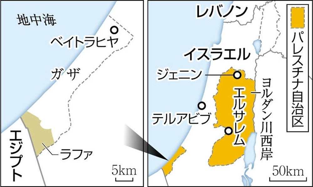 米CNNによると、ガザ北部ベイトラヒヤでは20日、イスラエル軍の砲撃で12人が死亡、10人が負傷した。女性や子供を中心に約10人が、がれきに埋もれたままとなっており、死傷者は増える可能性がある。 軍はパレスチナ自治区ヨルダン川西岸でも軍事作戦を展開している。軍ラジオは21日、北部ジェニンの難民キャンプに多数の治安部隊が突入し、武装勢力との激しい銃撃戦を始めたと報じた。パレスチナ通信によると、軍の攻撃で医師や学生を含む7人が死亡、9人が負傷した。