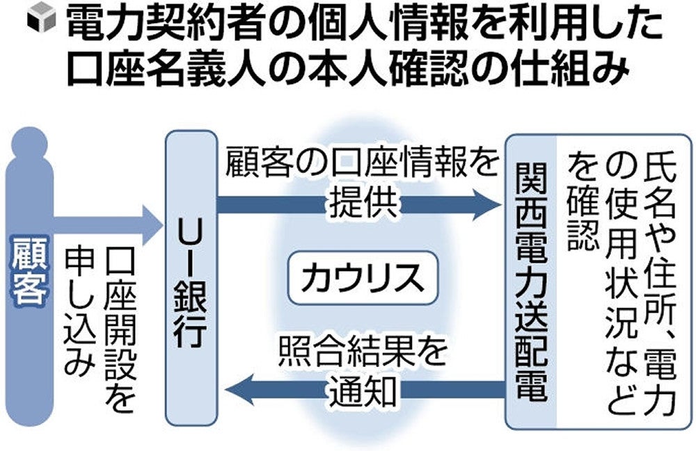 関西電力(大阪市)や東京きらぼしフィナンシャルグループ(FG)(東京)などは、銀行口座を開設する際などの本人確認で、電力契約者の個人情報を利用する全国初の取り組みを始めた。マネーロンダリング(資金洗浄)をはじめとした犯罪では、不正に開設された口座が使われることも多く、こうした事案を防ぐ狙いがある。