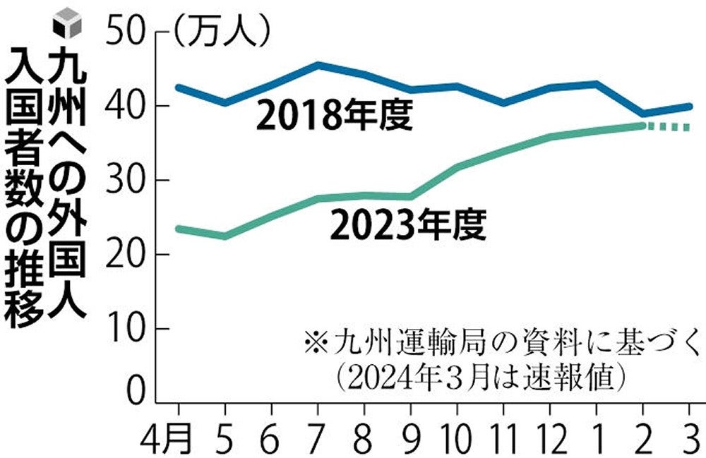 新型コロナウイルス禍で落ち込んでいたインバウンド(訪日外国人客)が回復する中、九州でもコロナ禍前の水準に戻りつつある。一方、オーバーツーリズム(観光公害)などの課題も深刻化し、自治体や宿泊施設は、混雑解消、業務負担の軽減などへの対策を進めている。(小川晶弘)