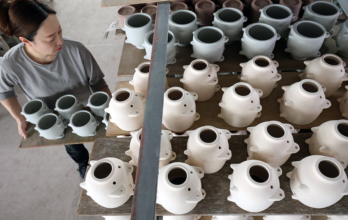 夏本番を前に、三重県菰野町の萬古焼(ばんこやき)の窯元「山口陶器」で、蚊取り線香を入れる「蚊やり豚」の出荷がピークを迎えている。山口陶器では大小約4000個の蚊やり豚を全国に出荷する。伝統的なデザインを踏まえつつ、白、黒、グレーの3色を用意した。山口典宏社長は「新しいけれど懐かしい感じを出した。日本文化の良さを再認識してもらうとともに萬古焼を多くの人に知ってほしい」と話していた。(菅野靖撮影)動画はこちら→「蚊やり豚」の出荷ピーク…三重・菰野 Japan Japan News News News Japan Yomiuri Local Yomiuri Local News Yomiuri News Yomiuri Shimbun 読売地域 読売地域新聞 読売新聞