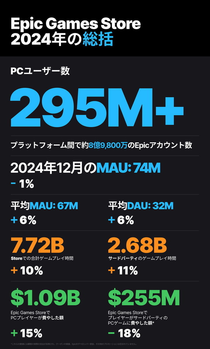 Epic Gamesは、Epic Games Storeについて2024年のデータおよび総括を公開しました。