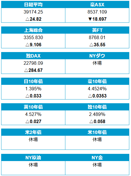 ▼17日(月)の株・債券・商品市場