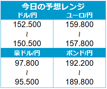 人気通貨ペア 本日の予想レンジ