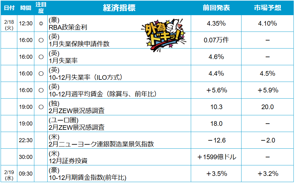 日銀の追加利上げへの思惑が高まっており、本日は衆院財政金融員会における植田日銀総裁の発言に注目が集まりそうだ。また、明日には高田審議委員の講演も予定されている。本日も日銀の利上げ期待がドル/円の上値を抑える展開が予想される。2/7安値の150.92円前後を割り込めば下げ足が速まる可能性もある。
