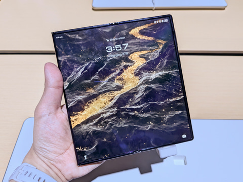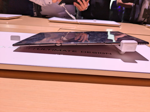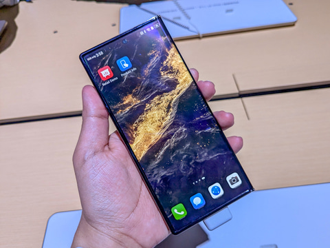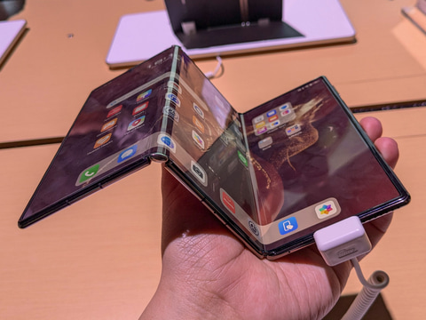 ディスプレイは1画面時6.4型(2,232×1,008ドット)、2画面時に7.9型(2,232×2,048ドット)、3画面時に10.2型(2,232×3,184ドット)となる。厚さは3画面時に最薄部が3.6mmとなり、同社は折りたたみスマホ史上、最も大きく、最も薄いスマホと謳っている。