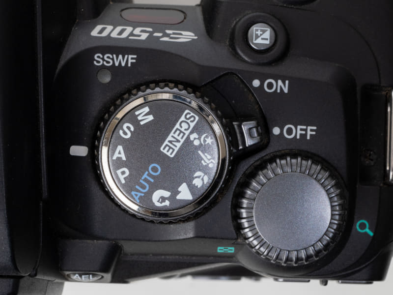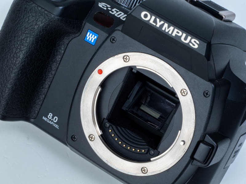 E-500のセンサーは有効800万画素CCD。「ダストリダクションシステム」も搭載しており、ゴミに悩まされることはありません。ISO感度設定は常用ISO100~400。拡張設定で最大ISO 1600までと、センサーの性能はさすがに時代を感じさせるものがあります。背面LCDは2.5型の21.5万画素ですから、拡大すると逆に鮮鋭ではなくなるのでフォーカスが合っていないんじゃないかと不安になります。
