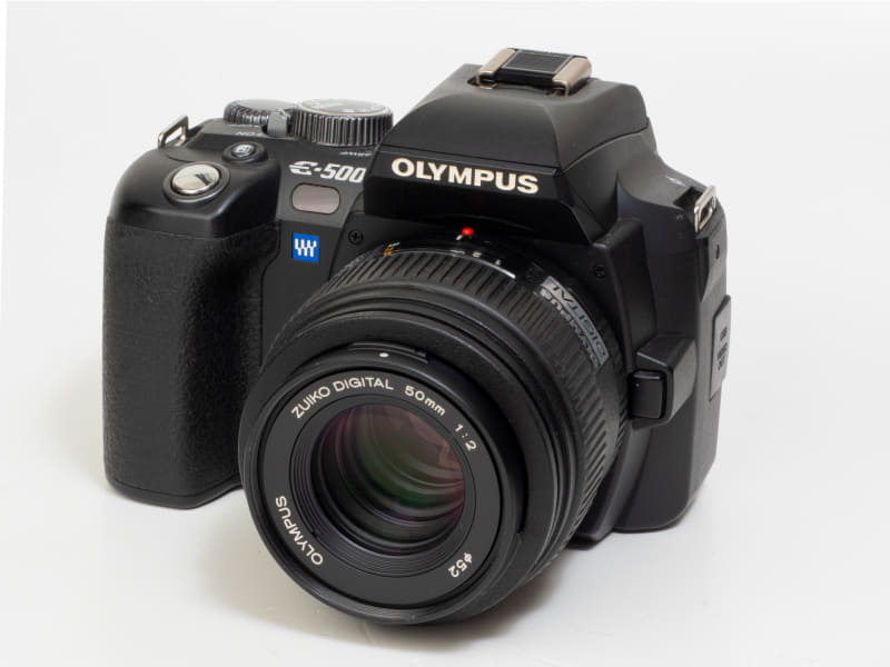 発売当時はE-500のスタイリングは、一眼レフらしさを狙ったみたいな論評もみましたが、前機種のE-330が溶けて放置されたチョコレートが再び固まったようなデザインでしたから、デザイン的に迷走することは避け、多くの人がイメージする“カメラ”らしくしたかったというのが本音かもしれませんね 。