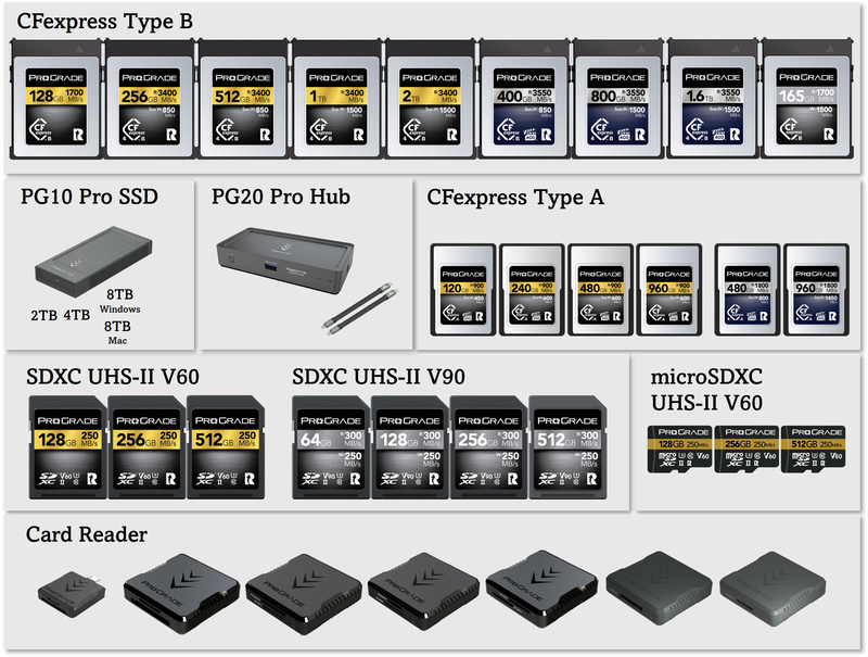 Thunderbolt 4ハブPG20 Pro Thunderbolt 4 Hub:28,100円→23,885円(15%)USB4ケーブル:5,000円→4,250円(15%)外付けSSD「PG10 Pro」2TB:66,000円→56,100円(15%)4TB:132,000円→112,200円(15%)8TB(Windows):231,000円→196,350円(15%)8TB(Mac):231,000円→196,350円(15%)CFexpress 4.0 Type BGOLD 256GB:24,800円→21,080円(15%)GOLD 512GB:33,000円→28,050円(15%)GOLD 1TB:54,500円→46,325円(15%)GOLD 2TB:90,800円→77,180円(15%)CFexpress 2.0 Type BGOLD 128GB:16,500円→14,025円(15%)COBALT 165GB:29,700円→25,245円(15%)CFexpress 4.0 Type AIRIDIUM 480GB:54,500円→46,325円(15%)IRIDIUM 960GB:82,500円→70,125円(15%)CFexpress 2.0 Type AGOLD 120GB:21,500円→18,275円(15%)GOLD 240GB:33,000円→28,050円(15%)GOLD 480GB:49,500円→42,075円(15%)GOLD 960GB:72,600円→61,710円(15%)SDXC UHS-IIV60 GOLD 128GB:8,300円→6,375円(15%)V60 GOLD 256GB:14,900円→11,220円(15%)V60 GOLD 512GB:27,300円→19,635円(15%)V90 COBALT 64GB:11,600円→9,860円(15%)V90 COBALT 128GB:20,800円→17,680円(15%)V90 COBALT 256GB:38,000円→32,300円(15%)V90 COBALT 512GB:82,500円→74,250円(10%)microSDXC UHS-IIV60 GOLD 128GB:8,500円→6,460円(15%)V60 GOLD 256GB:15,100円→11,390円(15%)V60 GOLD 512GB:27,400円→19,635円(15%)USB4.0対応シングルスロットカードリーダーCFexpress 4.0 B PG05.6:16,500円→14,025円(15%)CFexpress 4.0 A PG09.6:16,500円→14,025円(15%)USB 3.2 Gen 1対応ダブルスロットカードリーダーSD/microSD PGM0.5:5,800円→4,930円(15%)USB 3.2 Gen 2対応ダブルスロットカードリーダーCFast/SD PG02:13,200円→11,220円(15%)CFexpress B/SD PG05.5:13,200円→11,220円(15%)SD/SD PG08:13,200円→11,220円(15%)CFexpress A/SD PG09:13,200円→11,220円(15%)価格改定