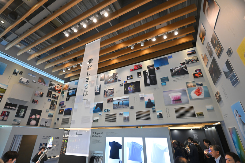 ストア内は「愛おしさを哲学する間」と「Xを哲学する間」の2つのエリアで構成。「愛おしさを哲学する間」では、来場者が自身にとっての愛おしさについて考えるヒントとなる約200枚の写真と言葉を壁面に展示している。写真家がXシリーズで撮影した作品と「愛おしさとは」という問いへの回答を眺めながら、自分自身の「愛おしさ」を考える空間となっている。