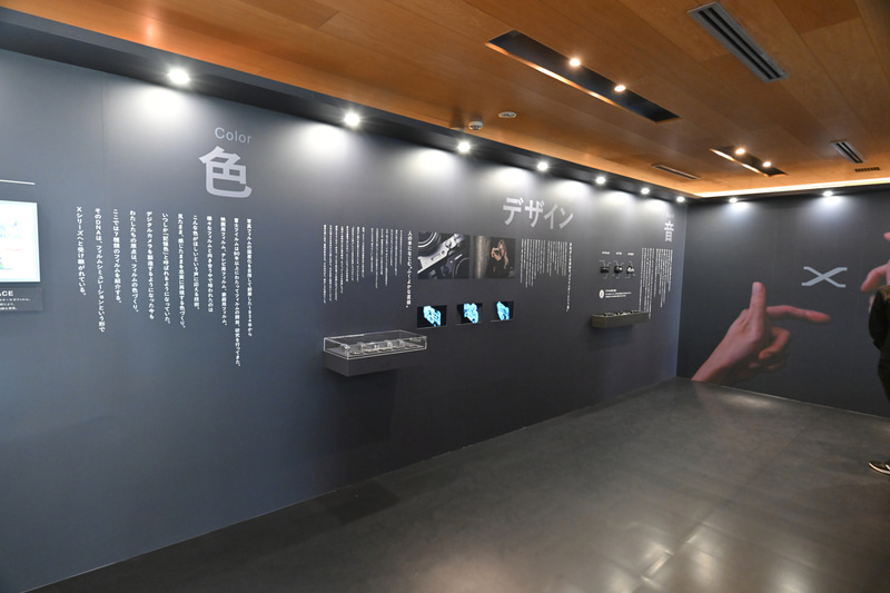 「色」の部分では、富士フイルムが長年培ってきたフィルム技術をデジタルに移植したフィルムシミュレーションの仕組みを紹介。同コーナーにおいてはオリジナルのネガフィルムやリバーサルフィルムが展示されている。