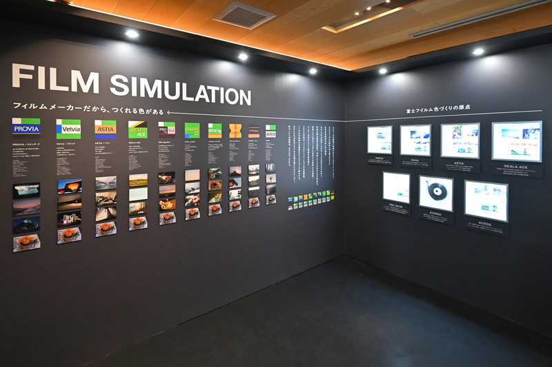フィルムシミュレーションの元になったフィルムたちを展示している