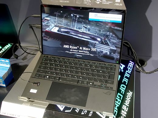 ROG Flow Z13 GZ302EAは、CPUに開発コードネーム“Strix Halo”ことRyzen AI MAX 300シリーズを採用したゲーミング2in1 PC。従来モデルと異なりディスクリートGPU非搭載ながら、RDNA 3.5アーキテクチャ採用のCPU内蔵GPUで同等のゲーミング性能を実現しているとする。