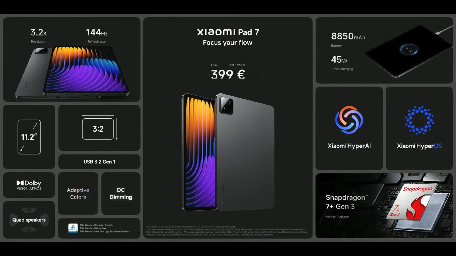 オプションの Xiaomi Pad Focus Keyboard は199ユーロ(約3.1万円)、Xiaomi Focus Pen は99ユーロ(約1.6万円)です。