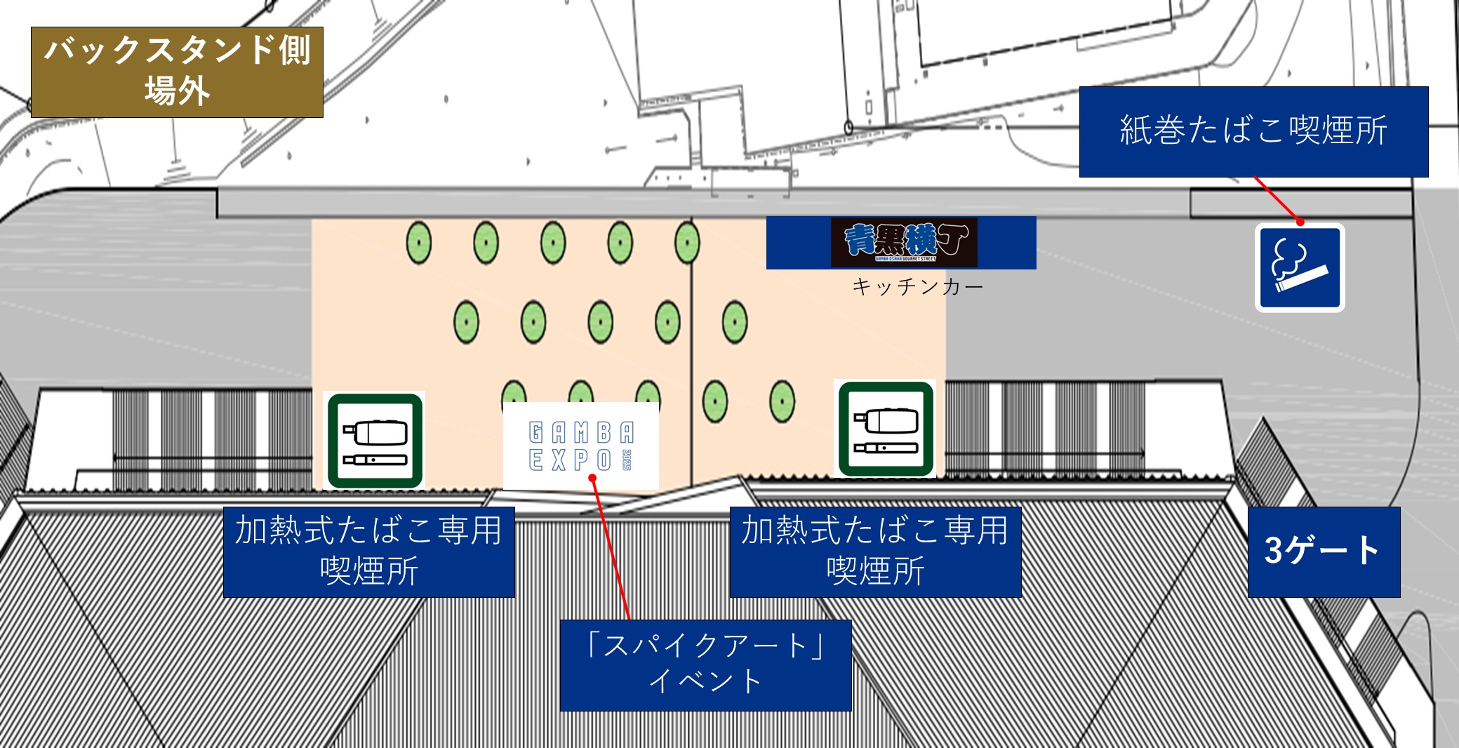・メイン側1か所に設置(開場~試合終了後30分まで)