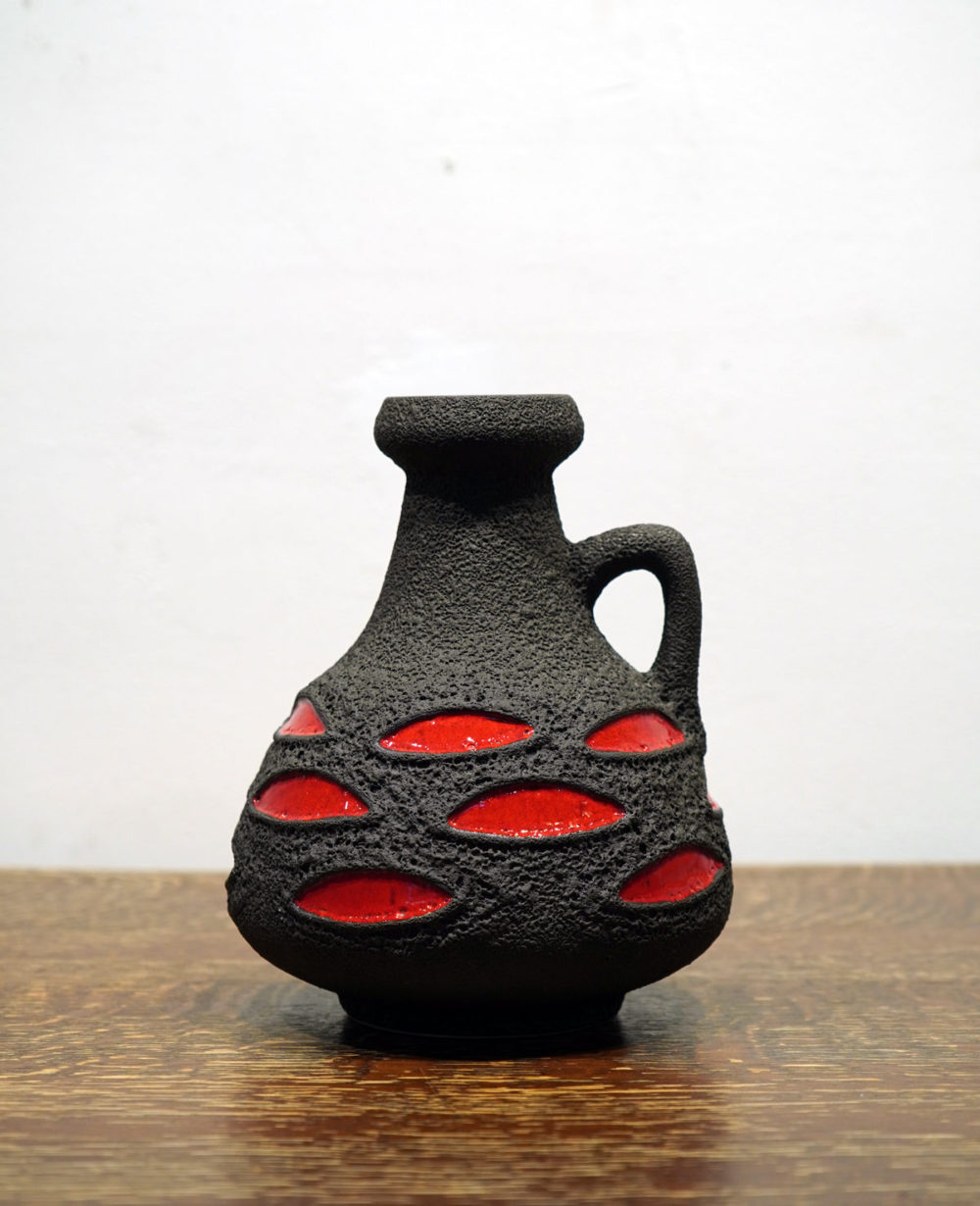 50年代から70年代に主に旧西ドイツで盛んに製造された陶器、ファットラバ。主に花瓶や水差しボウルなどの装飾品が多く、多種多様な釉薬で表情をつけるなど装飾が施されている。ひとつひとつ異なる独特な仕上がりで、花器の枠を超えインテリアの一部として、世界中のコレクターに愛されている。花器 ¥27,500 Fat Lava