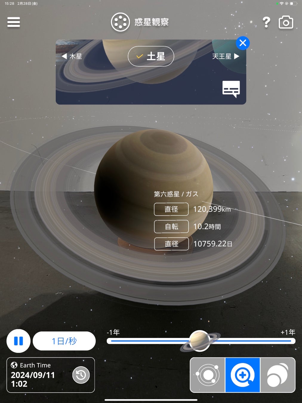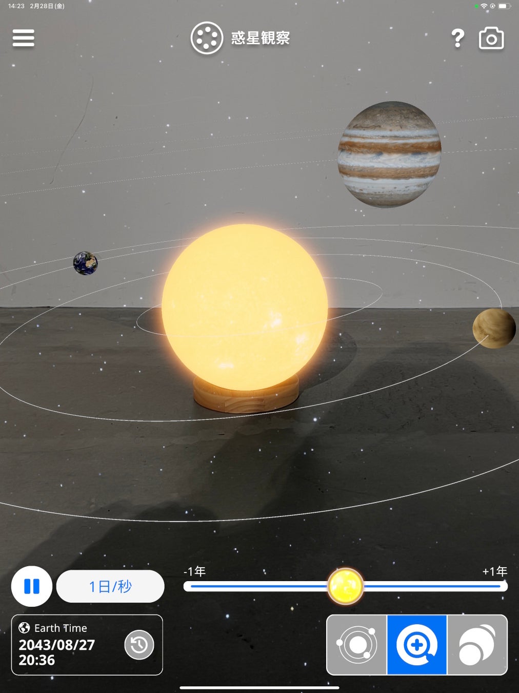 目の前に広がる宇宙空間で、太陽系を観察できる「惑星観察」