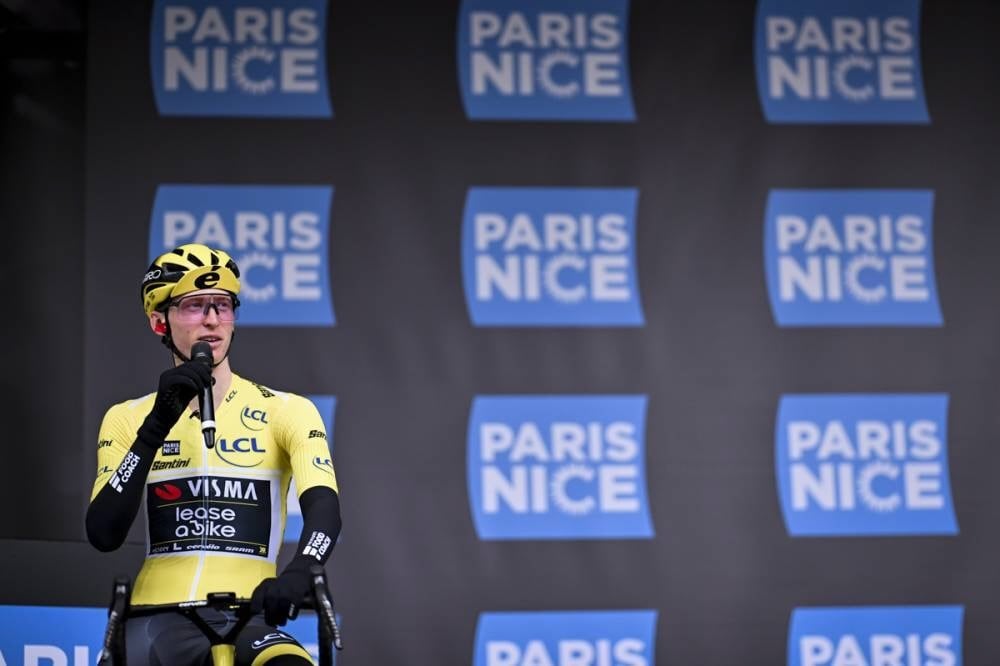 雹と雪でレースが一時中断されたパリ〜ニース第4ステージ。先行するヴィンゲゴーをジョアン・アルメイダ(ポルトガル、UAEチームエミレーツXRG)がフィニッシュ手前で抜き、勝利。総合首位にはヴィンゲゴーが立っている。