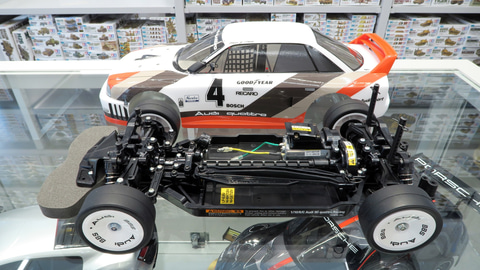 東京・新橋にあるタミヤプラモデルファクトリー東京。多彩なタミヤ製品がずらりと並ぶ店内には、新商品や限定アイテムの展示も行われている。今回はその中でもひときわ存在感を放つ「1/10RC アウディ 90 クワトロ レーシング(TT-02シャーシ)」を紹介する。