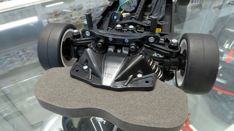 シャーシにはツーリングカーの定番、シャフトドライブ4WDのTT-02を採用。ホイールベースをショートタイプの251mmに設定されている。TT-02シャーシは、部品点数を抑えたパーツ構成で組み立てが容易なほか、高いメンテナンス性や多彩なオプションパーツによって初心者から上級者まで幅広いユーザーに支持される、バランスの取れた4WDシャーシだ。