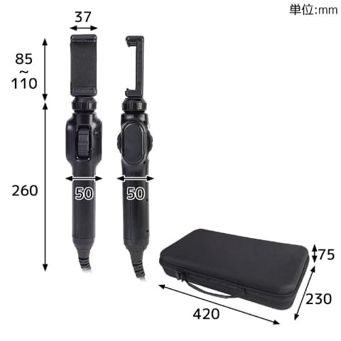 本体サイズは50×50×260mm(幅×奥行×高さ)で重量は約340g。本体とケーブル一式を収納できるケースが付属する。