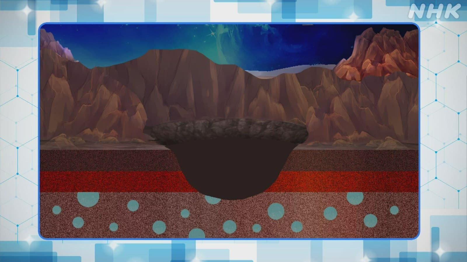 火山活動でできる地形なんですが、火山活動があったということだけではなくて、その当時、水もあったことも示す地形です。火山活動があった時に水もあったということで、温泉みたいな環境があったと想像できます。