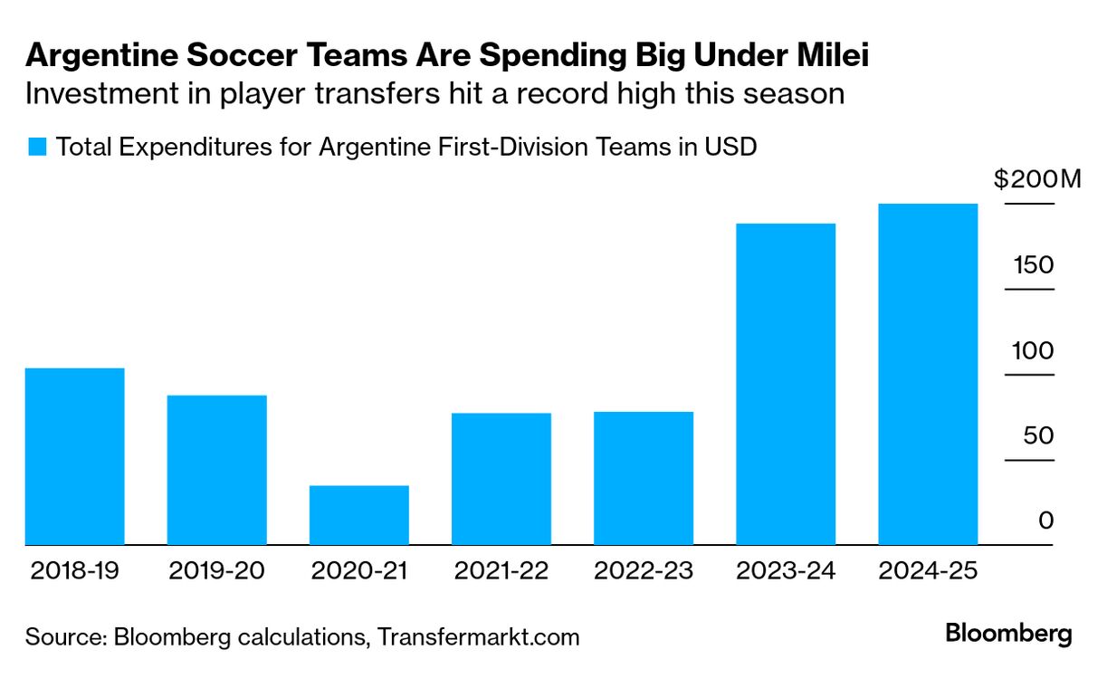 だが、アルゼンチンサッカーの復活は、多くの投資家やアナリストにとって、財政立て直しとインフレ抑制、経済活性化を目指すミレイ政権の計画がはらむ危うさの象徴でもある。