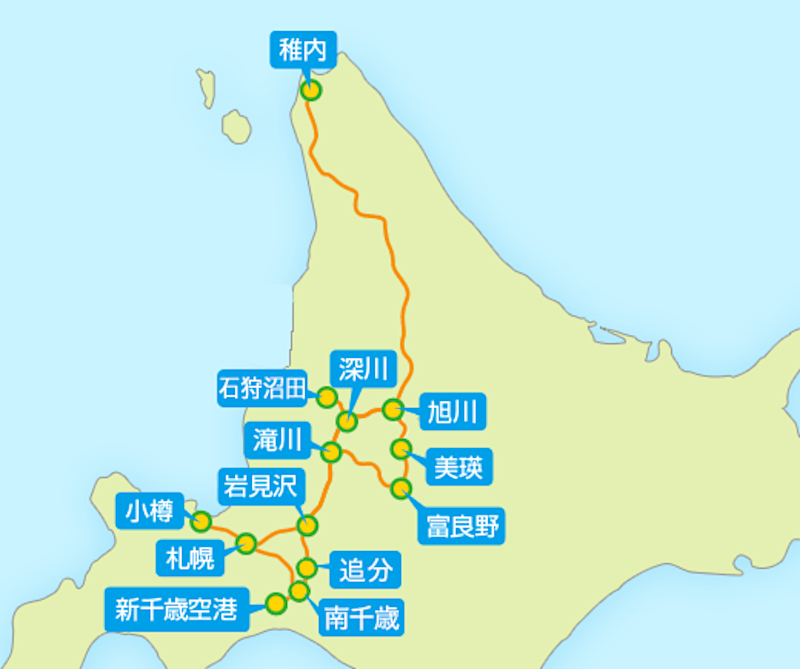小樽~札幌~白石~岩見沢~滝川~深川~旭川