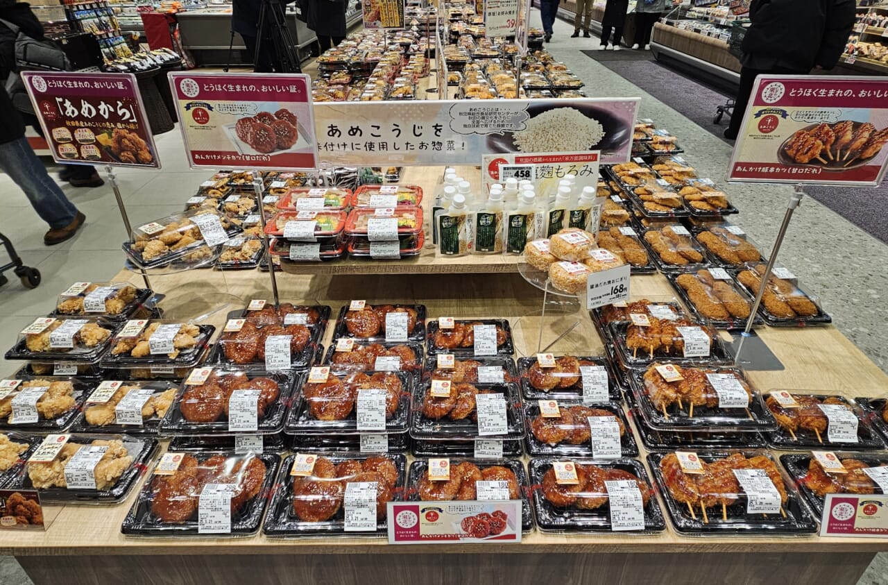 ほかにも、「だし醤油だれの鶏もも焼き」や、あめこうじを発酵させてつくった塩麴もろみを活用した「むね肉なのにジューシー!『あめから』」など、すでに販売している商品を含めてあめこうじの関連商品を並べたコーナーを設置していた。