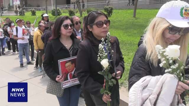 多おおくの人ひとが最後さいごのあいさつをすることができるように、フジモリさんはペルーの国立博物館こくりつはくぶつかんに運はこばれました。12日にちは、多おおくの人ひとが花はなや写真しゃしんを持もって並ならんでいました。