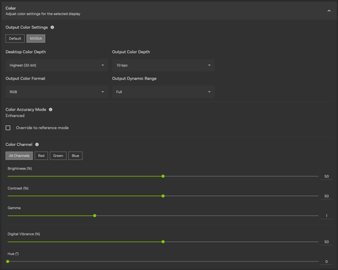このほか、NVIDIAコントロールパネルから、ディスプレイのスケーリングや色調節の設定がNVIDIAアプリ内に統合されている。