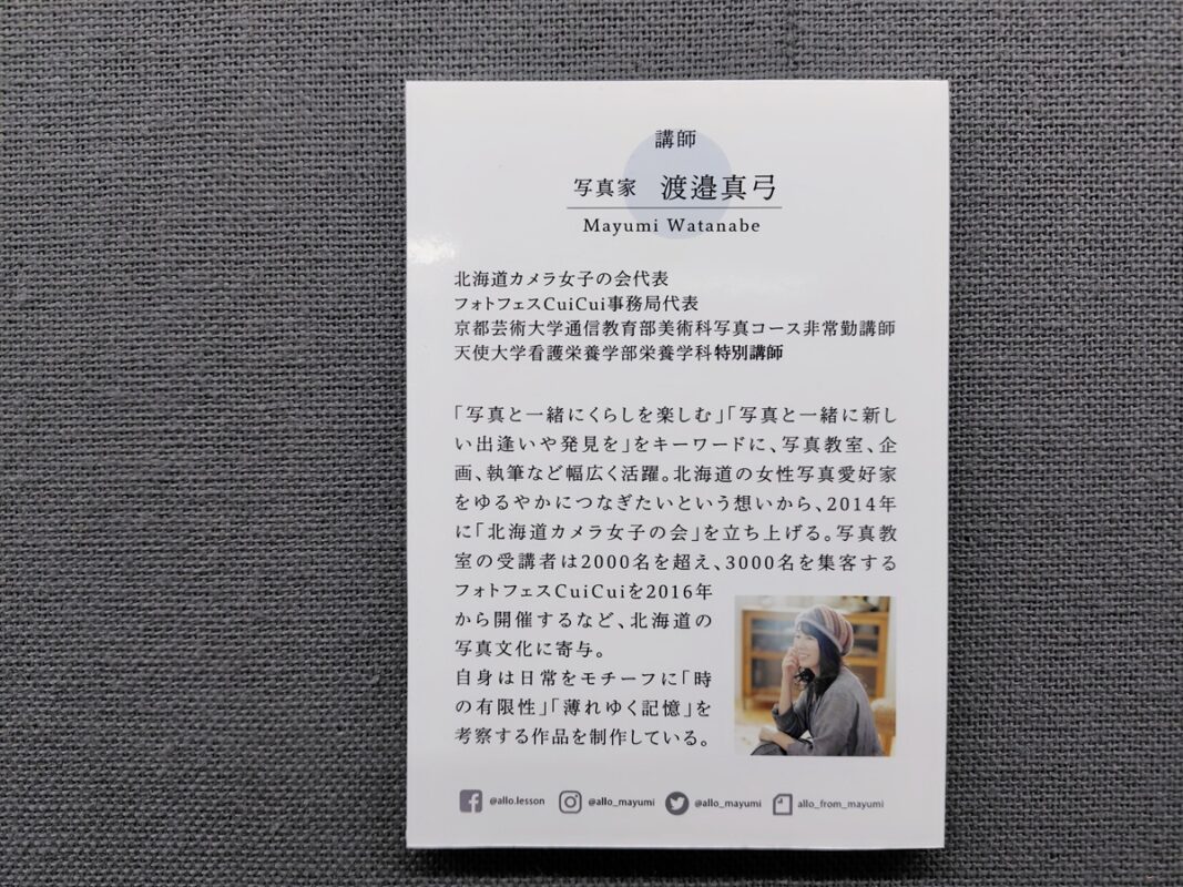 講師である写真家 渡邉真弓さんの紹介。
