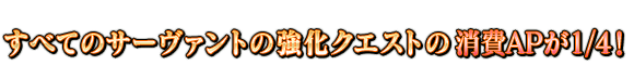 開催期間中、すべてのサーヴァント強化クエストの消費APが1/4になります!
