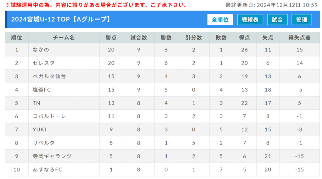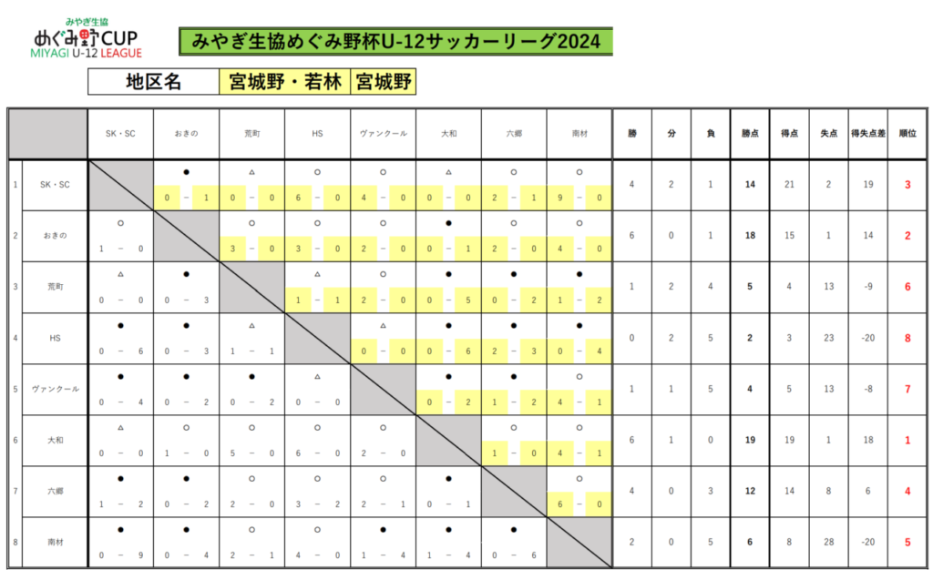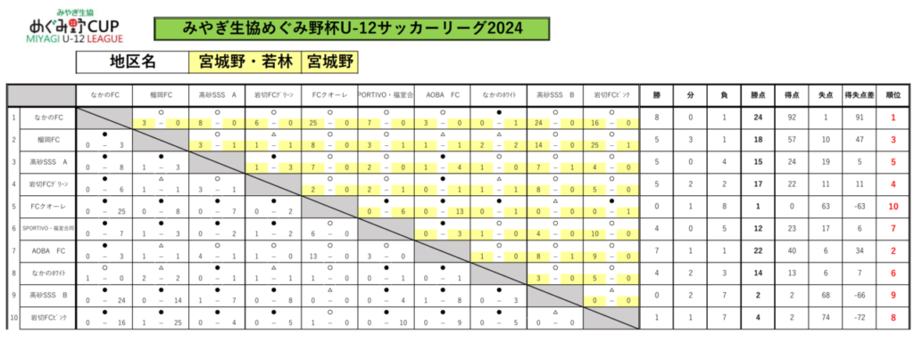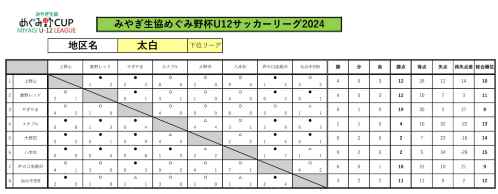 みやぎ生協めぐみ野杯U-12 2024後期TOPリーグ