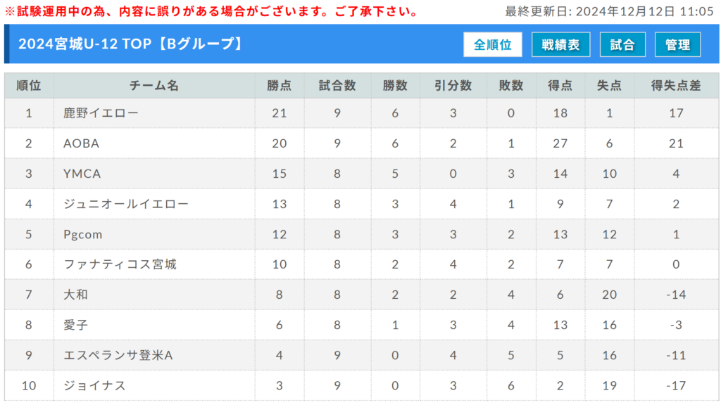 みやぎ生協めぐみ野杯U-12 2023 後期TOPリーグ(宮城) 優勝はベガルタ仙台ジュニア!未判明の結果情報お待ちしています