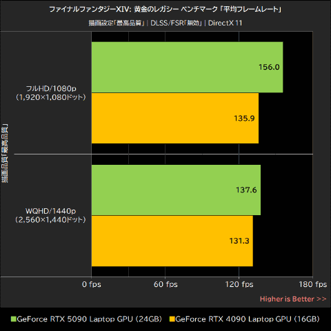 ファイナルファンタジーXIV: 黄金のレガシー ベンチマークでは、描画設定を「最高品質」に設定して、フルHD/1080pとWQHD/1440pでテストを実行した。