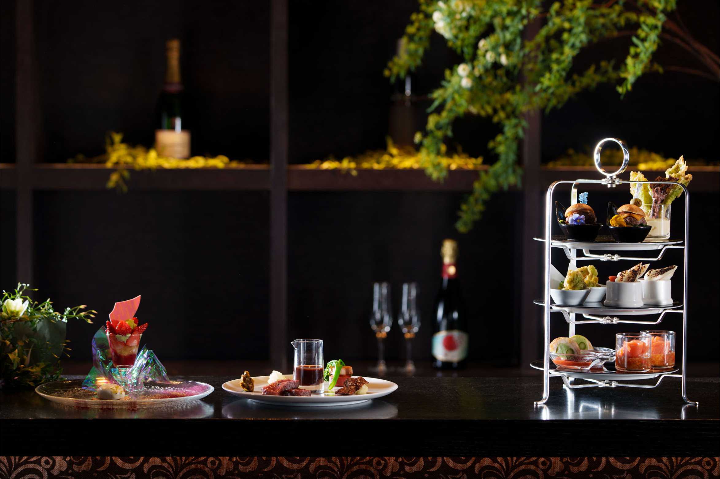 仙台・宮城で育てられた牛肉や鶏肉、サーモンに加え、名産品の笹かまぼこや牛たん、ずんだ餅に至るまで県内各地の味わいを、ハイティースタイルで楽しむことのできるゴールデンウイーク限定のメニューです。ティースタンドのオードブルには、宮城県産黒毛和牛のパテをサンドしたチーズバーガーや、笹かまぼことプチトマトのマリネ、古代米とひとめぼれ米のチュイルなど、地元の食材をプチサイズに凝縮した6種類をラインナップ。シェフが宮城の食材や名物を当ホテル流にアレンジしたメニューを一度に楽しめます。メインディッシュには、A5等級の仙台牛ランプ肉と名物の牛たんを盛り合わせた、豪華な一皿をご用意。香ばしくグリルしたお肉を、深みある赤ワインソースが引き立てます。デザートは、名物のずんだ餅に仙台いちごをトッピングした色合いが可愛らしいパフェ。締めのデザートまで、仙台・宮城の味を存分にご賞味いただけます。オリジナルモクテルのほか、ソフトドリンクのフリーフローとともにお楽しみください。