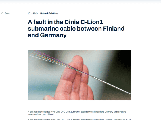 Ciniaは今回のケーブル切断により、C-Lion1で提供されていたサービスがダウンしていることを明らかにしているほか、フィンランドの国際的なデータ通信接続は複数の冗長回線を介して伝送することで保護されており、1本のケーブル障害の影響はサービスプロバイダーの接続の回復力に左右されることを報告しました。