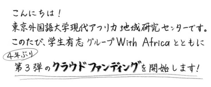 アフリカと日本の学生交流の流れを途絶えさせず、さらに発展させるために、私たちは第3弾のクラウドファンディングを行います。