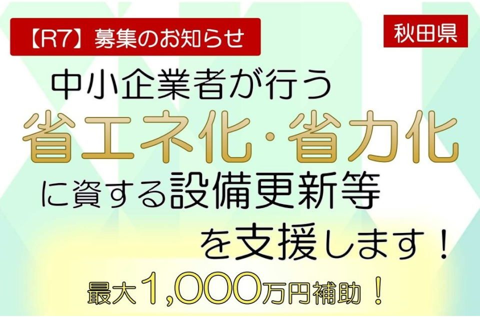 省エネ化・省力化に資する設備更新に最大1,000万円:秋田県 | 支援 | J-Net21[中小企業ビジネス支援サイト]