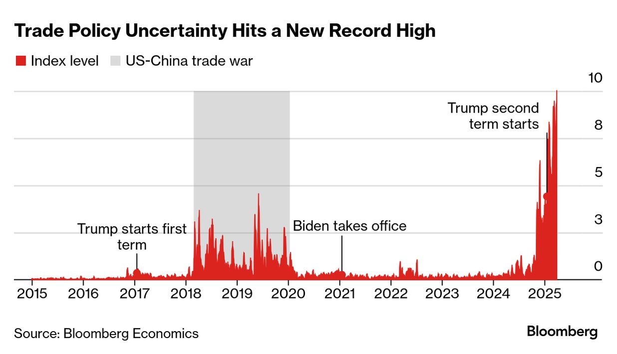 トランプ氏の関税に身構える投資家にとって、目まぐるしい局面が続いている。同氏が現在のルールに基づく国際的な通商システムをどこまで覆すのか依然として不透明だ。こうした不確実性が市場を動揺させ、エコノミストによる成長見通しの下方修正を招き、中央銀行は輸入物価上昇によるインフレ圧力を政策判断に織り込まざるを得ない状況となっている。