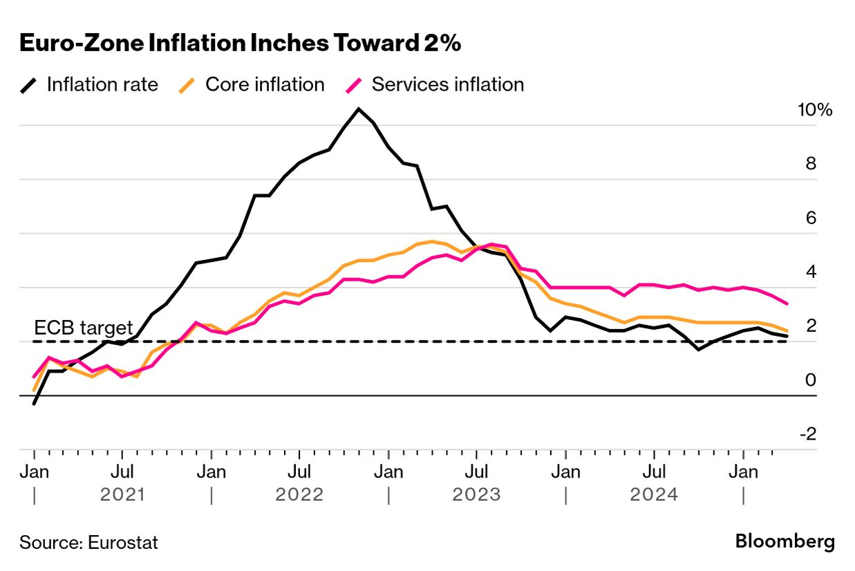 今週発表された3月のユーロ圏消費者物価指数(CPI)は前年同月比で2.2%上昇。当局者らは今後数四半期で目標の2%に戻ると見込んでいる。