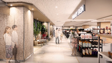 小腹がすいた時やお買い物の休憩に気軽に立ち寄れるフードコートや、日々の食卓を彩るスーパーマーケット、生鮮三品、グロサリー、惣菜店、和洋菓子店など、全30店舗が地下1階に集結します。