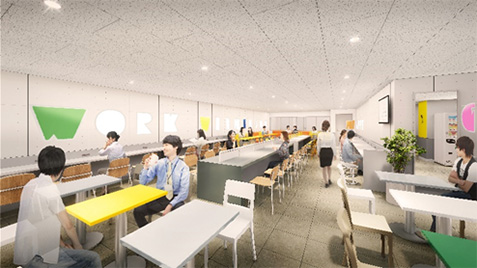 従業員の皆さまの働きやすい環境の実現と ES(従業員満足)向上を目指し、働く皆さまがゆっくり休憩をとれる従業員スペース(従業員休憩室、専用喫煙室)を館内に設置いたします。従業員の皆さまに、手軽に・快適にご利用いただける空間を提供します。