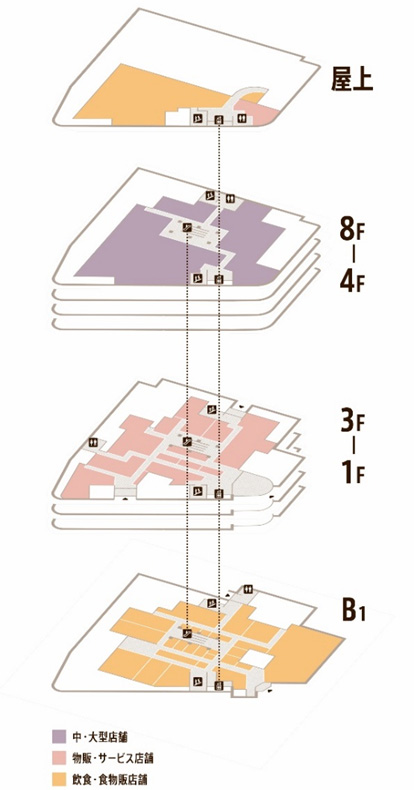 本施設は 「在るもので、新しく」~川口のレガシーを継承した、新たな街のランドマーク~ のコンセプトのもと、かつて駅前の象徴的な存在であり、2021年2月に閉店したそごう川口店の建物造作、地域を代表する産業といった、川口のレガシーを継承しながら、内装および一部外装のリニューアルを行った、ライフスタイル型商業施設です。