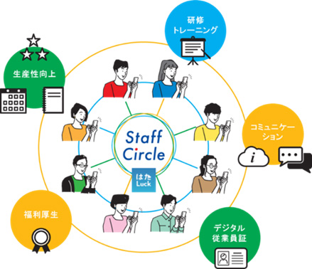 働きやすい環境と豊かなコミュニティを創出する取り組み「三井ショッピングパークStaff Circle(スタッフサークル)の一環として、働きやすさを実現する機能を集約したアプリ「はたLuck」を、全国のららぽーとなどに続き本施設でも導入します。